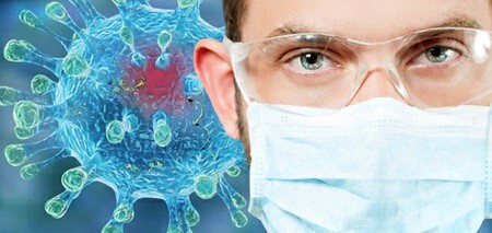 Doctor in protective mask and eyeglasses on Coronavirus background. Outbreaking COVID-19 virus 投稿者: Hanatani